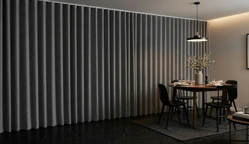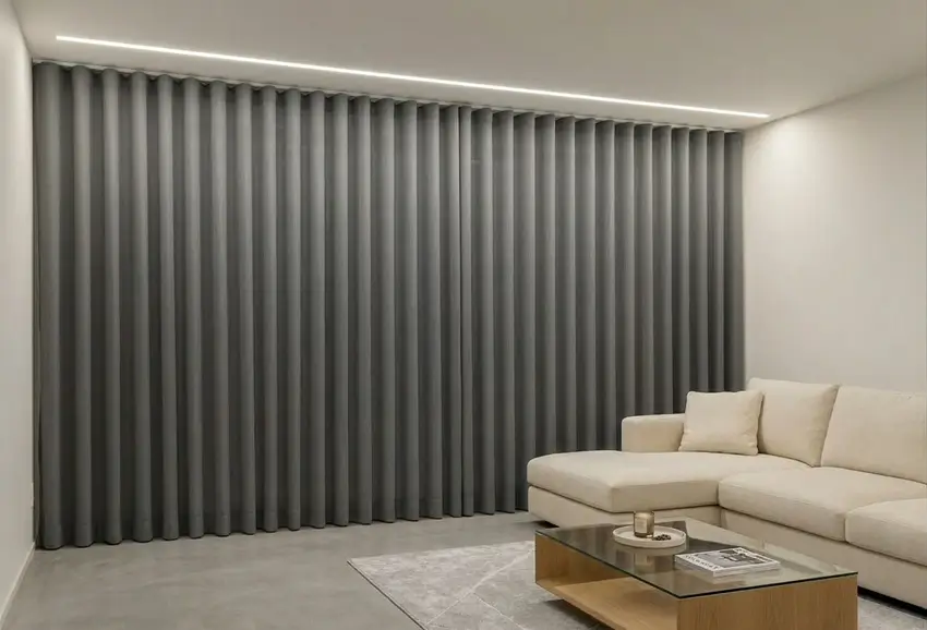 La Cortina Black out en Ondas Perfectas es una solución moderna para quienes buscan cortinas blackout elegantes con control eficiente de luz. Este sistema destaca por su caída uniforme en ondas continuas, creando un efecto visual sofisticado que realza la decoración de ventanas. Además, si estás buscando cortinas blackout cerca de mí, este tipo de cortina es una opción muy popular en proyectos de interiorismo moderno gracias a su combinación de estética, funcionalidad y confort interior.