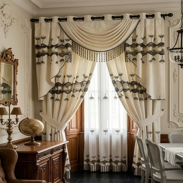 Dentro de las cortinas decorativas para interiores, las telas bordadas continúan siendo una opción muy apreciada por su capacidad para aportar textura visual y sofisticación al ambiente.
