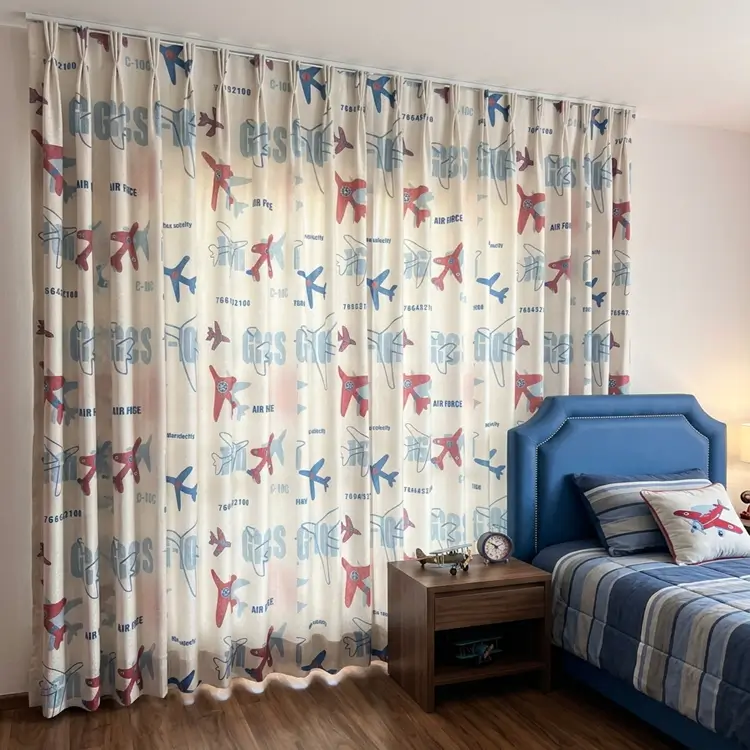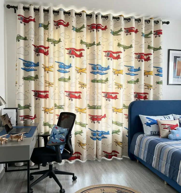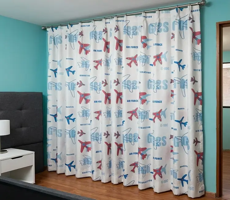Este tipo de cortina infantil con diseño de aviones es perfecta para complementar espacios temáticos o modernos, ayudando a filtrar la luz natural mientras aporta personalidad y estilo al ambiente.