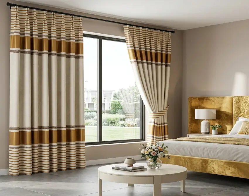 Es una franja decorativa superior que recorre la cortina en forma de línea horizontal, aportando elegancia visual y estilo diferenciado.