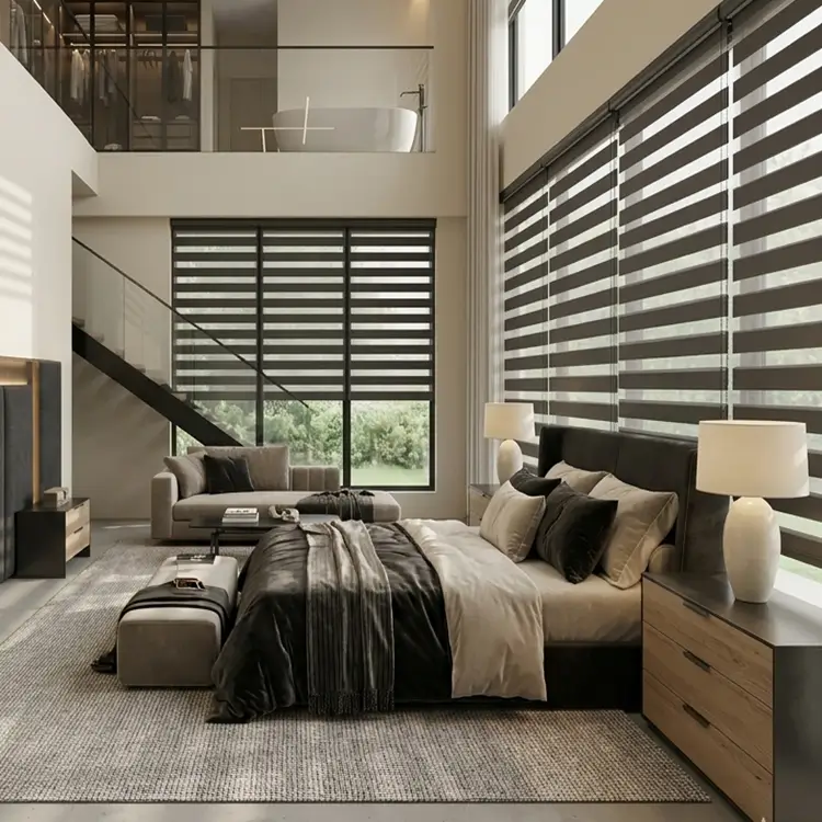 Las cortinas modernas para ventanales combinan tecnología y estética. Para ventanas de doble altura, destacan: