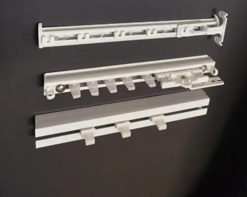 Fabricados en aluminio anodizado o PVC técnico liviano, estos rieles combinan resistencia estructural, funcionamiento silencioso y estética discreta, adaptándose a cualquier tipo de cortina o ambiente interior,estos rieles trabajan de manera optima para cortinas de tela blackout-semiblackout.