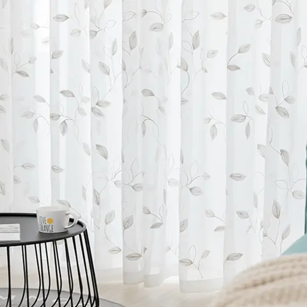 Cortinas Translucidas Bordado Hojas Estilo Natural | Tul Dunkel